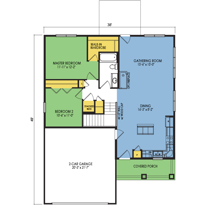 A part of our dream series, the tamarack floor plan features 3 bedrooms and 1.5 bathrooms with a foot print of 44x30 feet and 1342 total square feet of living space.