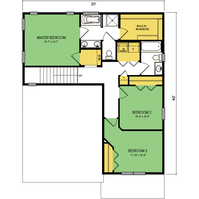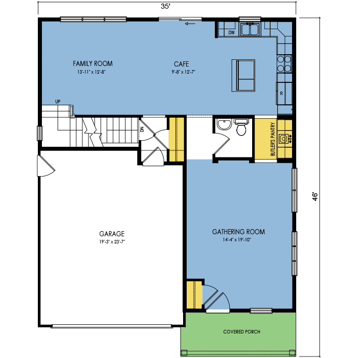 A part of our dream series, the tamarack floor plan features 3 bedrooms and 1.5 bathrooms with a foot print of 44x30 feet and 1342 total square feet of living space.