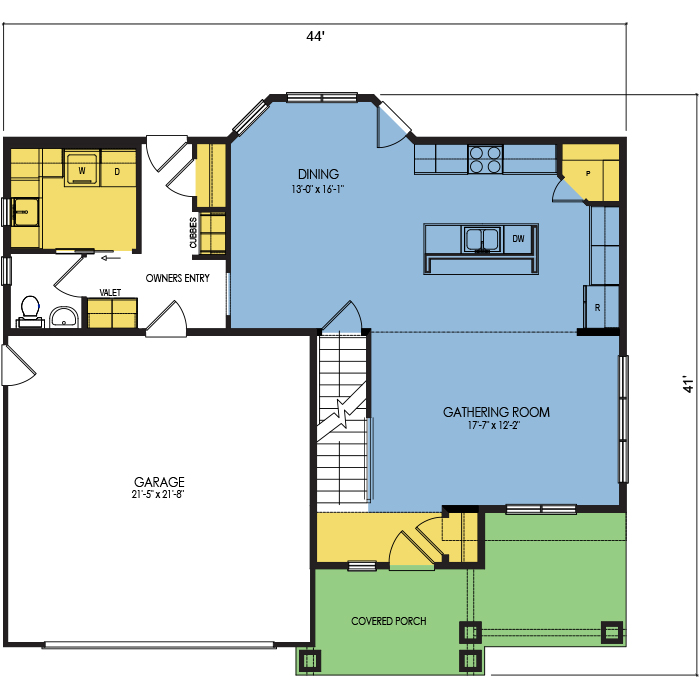 A part of our dream series, the tamarack floor plan features 3 bedrooms and 1.5 bathrooms with a foot print of 44x30 feet and 1342 total square feet of living space.
