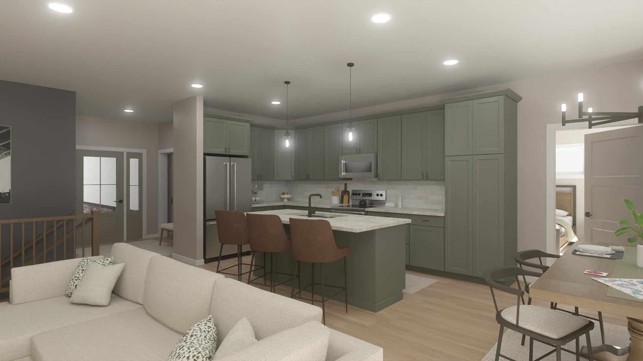The main level offers 3–4 bedrooms, 2 bathrooms, and a spacious 3-car garage, with the option to configure a 2-car garage if preferred. Just off the garage, you’ll find a convenient owner’s entry with mudroom and laundry space, providing built-in storage and a functional drop zone to help keep daily life organized.